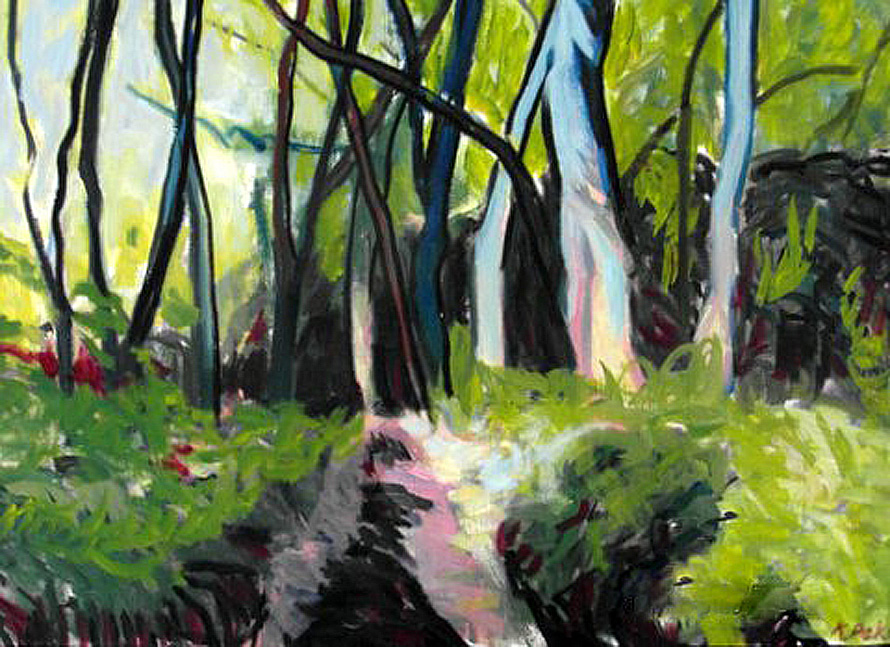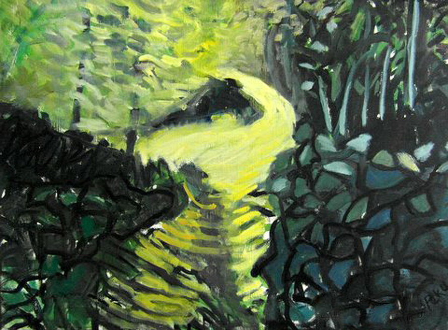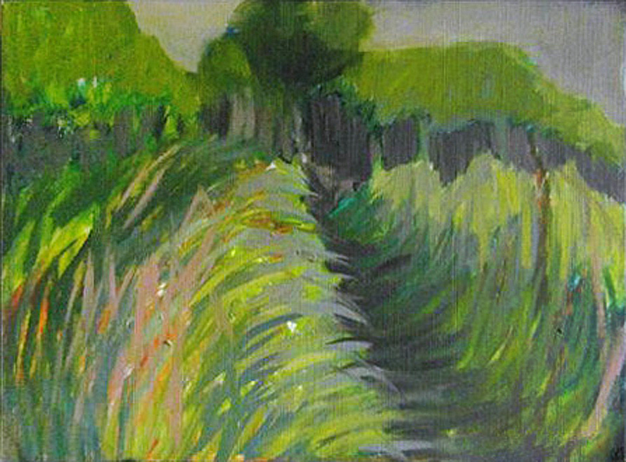 Deze paden heb ik geschilderd naar aanleiding van een vakantie in Normandië. Ik zocht letterlijk nieuwe wegen. Ik heb geëxperimenteerd zowel abstract als realistisch, met veel en weinig kleur. Dit is wat er uit kwam.