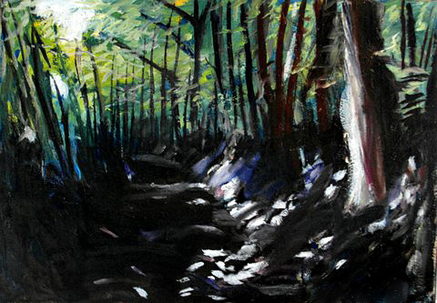 Mijn paden gaan over het alledaagse. Paden met lichte en donkere vlekken paden waar de wortels naar boven komen, romantische paden, donkere en lichte paden, glibberige paden, klimpaden zonder eind, rustige wandelpaden enz.